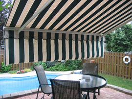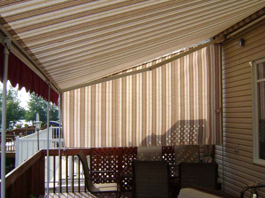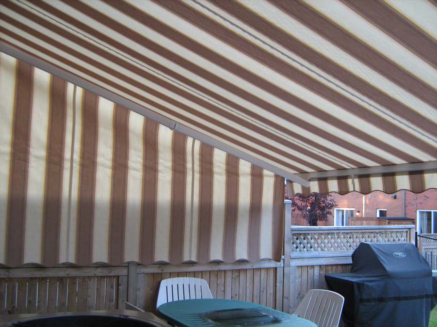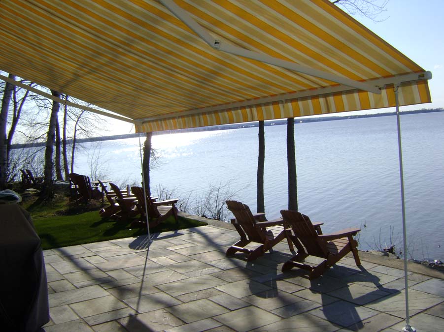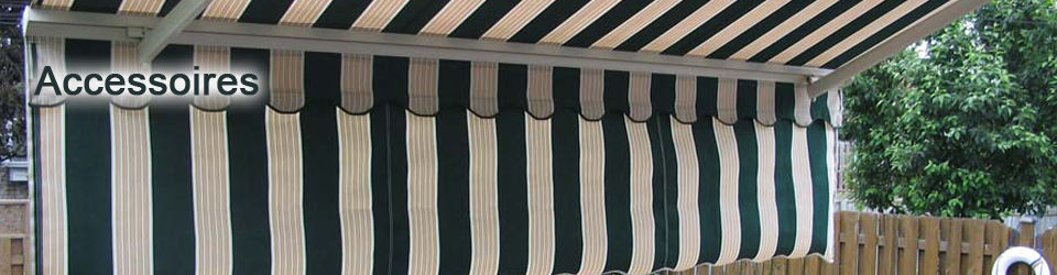 Nous offrons une grande variété d’accessoires pour protéger et embellir votre auvent. Nous livrons des rideaux de côté pour couper le soleil de fin d’après–midi pour votre auvent rétractable. Nous offrons une télécommande pour votre auvent équipé d’un moteur. Nous offrons des poteaux amovibles pour sécuriser l’auvent en cas de vent. Notre housse de protection pour l’hiver et notre couvert d’aluminium servent à tenir votre toile propre.