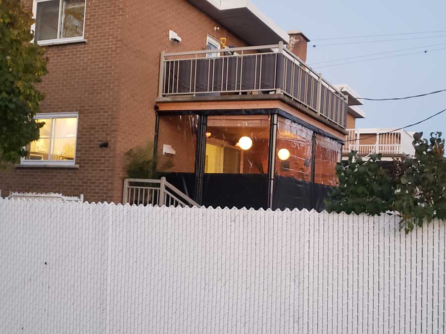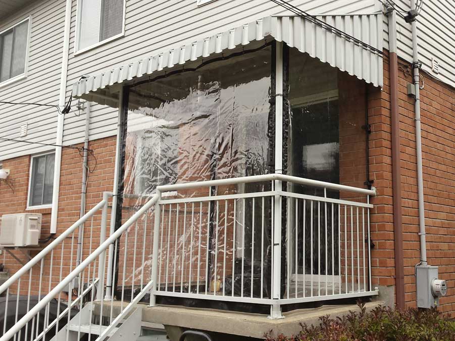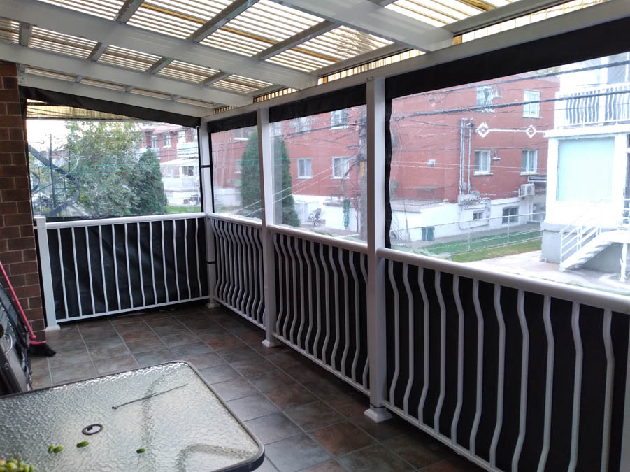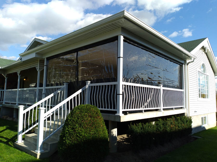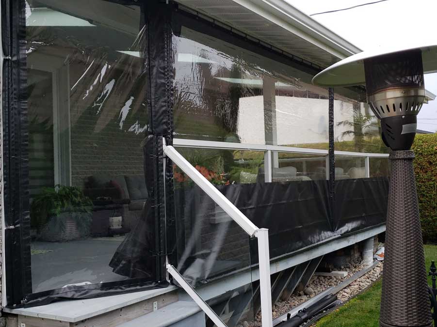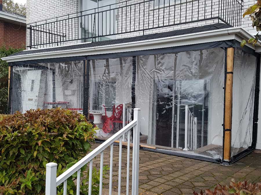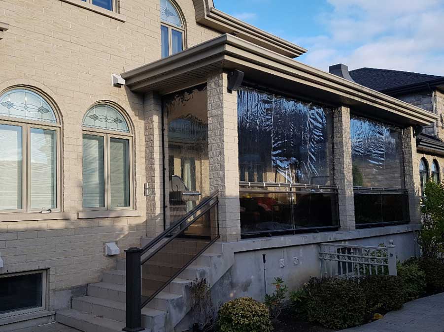 Avez-vous besoin de protégé votre entrée de garage, véranda ou balcon contre la neige, la pluie ou le vent? Nos rideaux de vinyle clair sont la solution idéale pour vous. Nos rideaux de qualité sur mesure sont équipés de rails avec roues pour votre convenance?