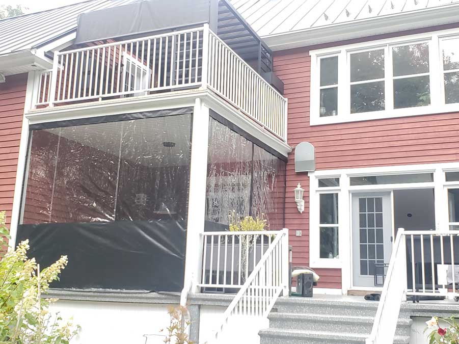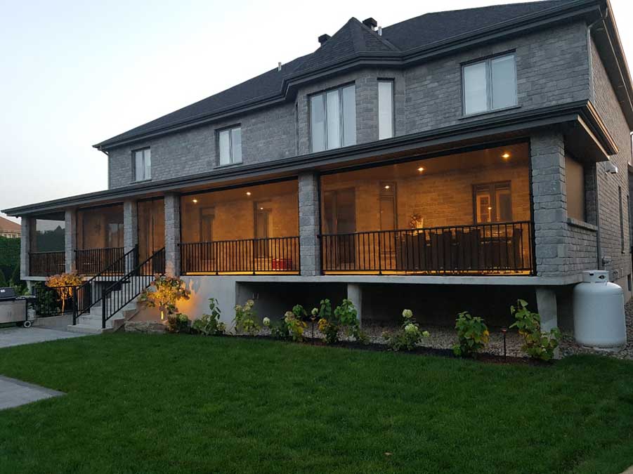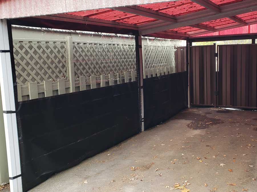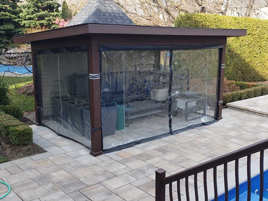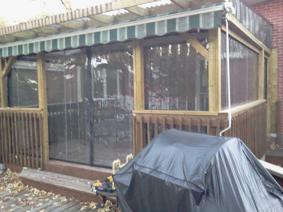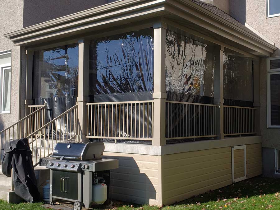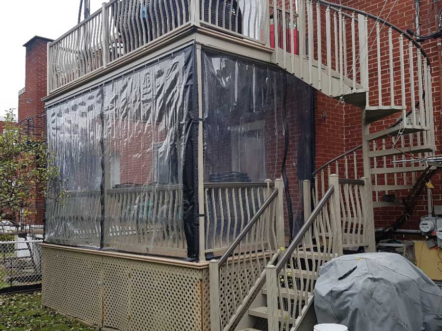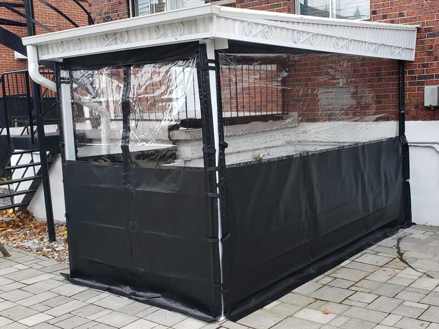 Avez-vous besoin de protégé votre entrée de garage, véranda ou balcon contre la neige, la pluie ou le vent? Nos rideaux de vinyle clair sont la solution idéale pour vous. Nos rideaux de qualité sur mesure sont équipés de rails avec roues pour votre convenance?